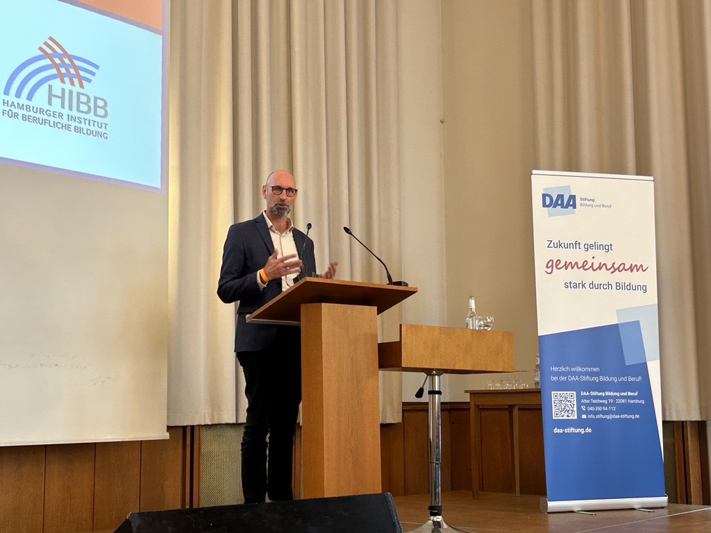 Dirk Flegel (Hamburger Institut für Berufsbildung) stellte regionale Strategien sowie erfolgreiche Praxisbeispiele für den Übergang von Schule in die duale Ausbildung vor – ein Schlüsselmoment im Lebenslauf junger Menschen.