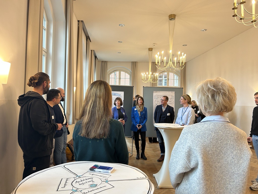 Im abschließenden Plenum, moderiert von Marvin Neumann, wurden zentrale Ergebnisse präsentiert und gemeinsam mit den Impulsgebenden – ergänzt durch Klaus Mansutti (Handelskammer Hamburg) – reflektiert.