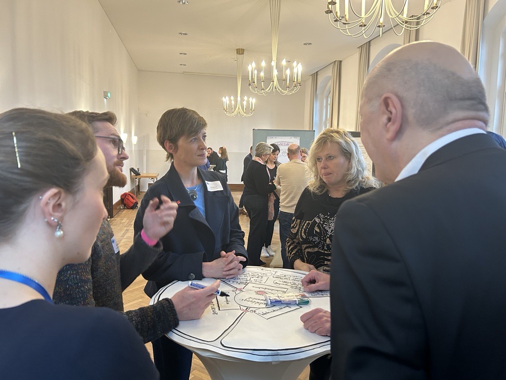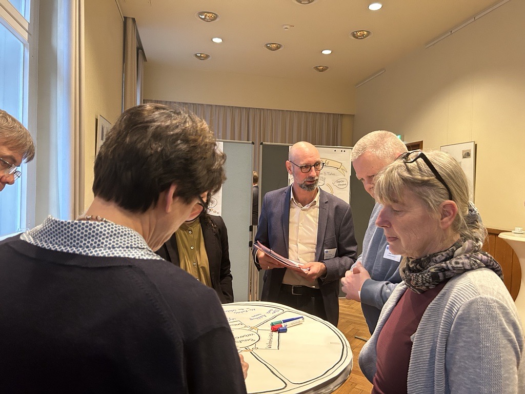 Im Mittelpunkt der Veranstaltung stand die interaktive Arbeit in Kleingruppen. Auf eigens gestalteten Tischvorlagen wurden Ideen gesammelt, diskutiert und für die Dokumentation festgehalten.